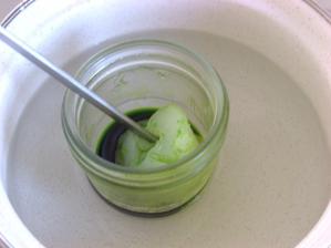 小さな泡立てでぐるぐるして、自然に冷まして行くとクリームになります。