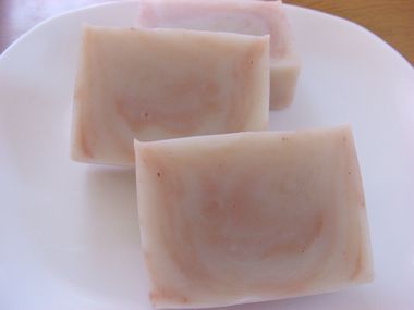 この石けんは手作り石けん教室の基本レシピの石けんでオプションにトルマリンパウダーを入れました。